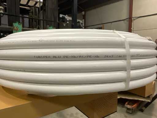 Rullo di tubo multistrato TUBRIPEC, modello PE-Xb/AL/PE-Xb, diametro 26 mm, spessore 3 mm, lunghezza 50 metri.