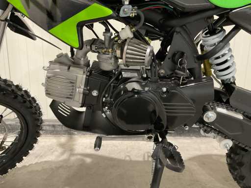 Equipaggiata con motore da 110cc; Frizione manuale; kickstart; Ruote/cerchio: V: 90/100-14 (14") A: 70/100-17 (17"); Freno a disco idraulico; ammortizzatore per olio; Tubo di scarico in acciaio singolo; Velocità massima: 70 km/h; Non utilizzato in scatola (Imballaggio da trasporto: 1295 x 375 x 620 mm)