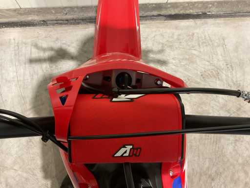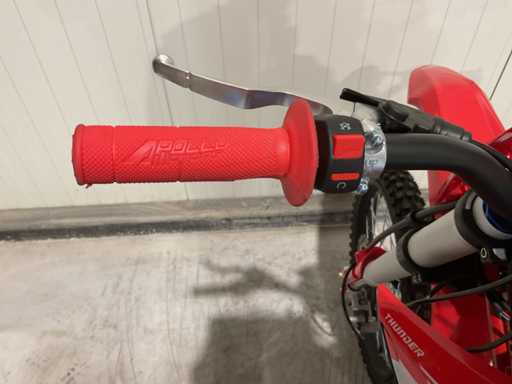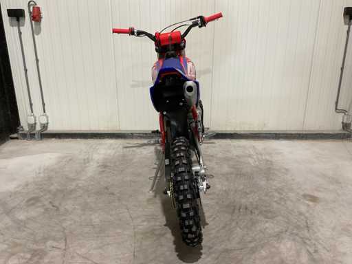 Equipaggiato con motore da 125 cc; 4 tempi; avviamento a calcio; Dimensione degli pneumatici anteriori: 19" pollici posteriori, 16" pollici; sospensioni idrauliche anteriori e posteriori; freni a disco; Non utilizzato in scatola (dimensioni di trasporto 150x40x75 cm)