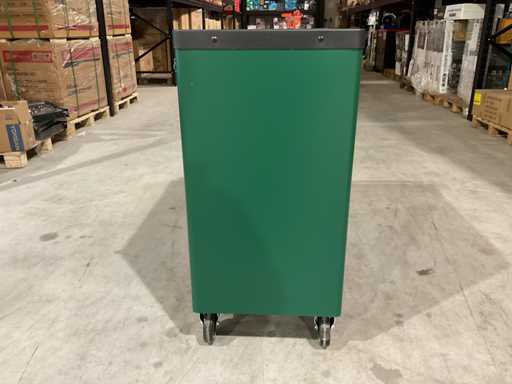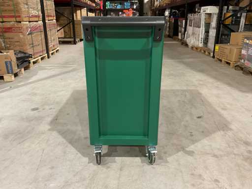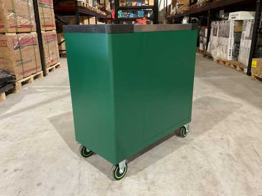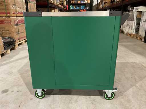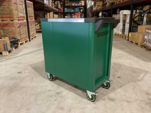 Dotato di 7 cassetti, 7 dei quali pieni di attrezzi; cassetto laterale; strumenti professionali in cromo-vanadio; carrello per attrezzi pesanti; piano da lavoro robusto; 4 ruote; manico robusto; Non utilizzato in scatola (dimensioni di trasporto 95x50x85 cm)