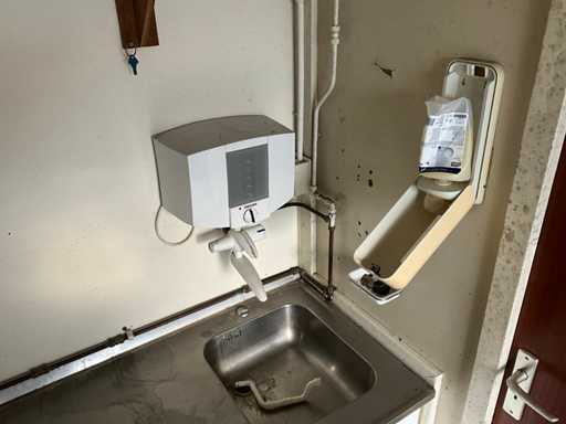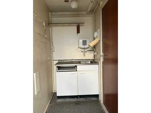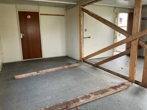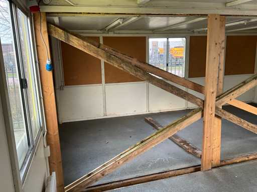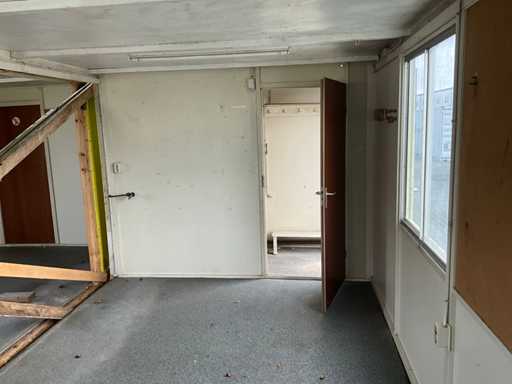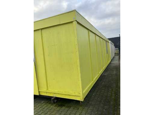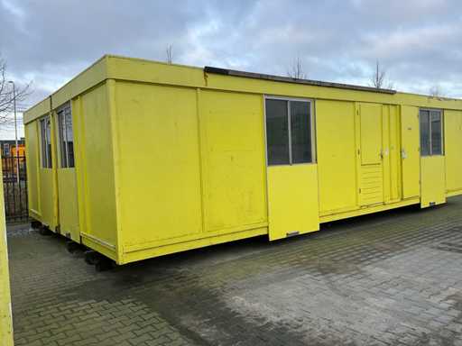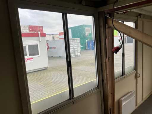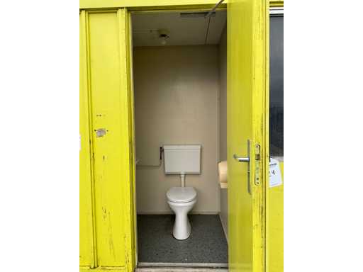 Composto da 2x unità. Dotato di: telaio di caricamento a gancio, WC, telai in alluminio con finestra scorrevole, riscaldamento elettrico, scatola per gruppi