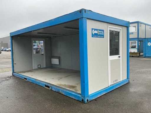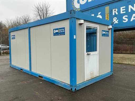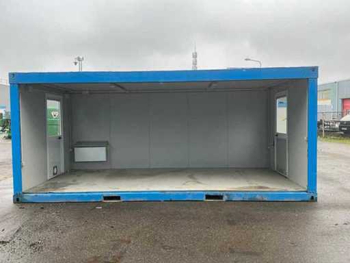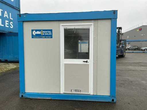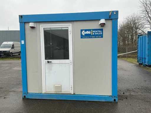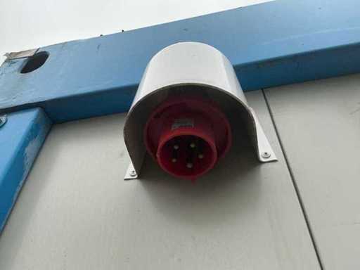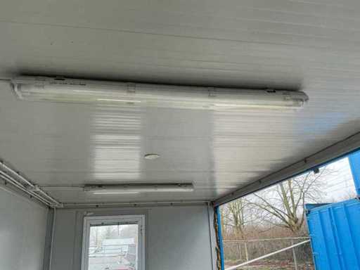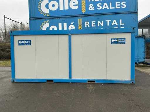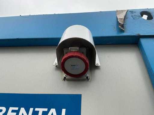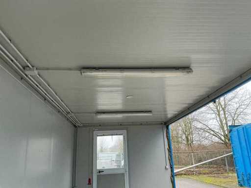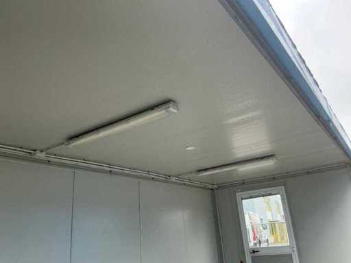 1x porta di wicket; riscaldatore elettrico; illuminazione; 3 prese; connessione 400 Volt 32 Ampere; 1 volta maschio, 1 femmina; slotture per carrelli elevatori; 1x finestra con tapparone a scorrimento; 1x parete laterale
