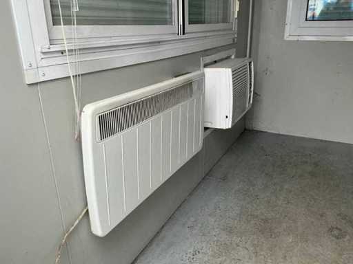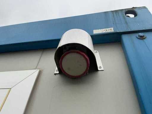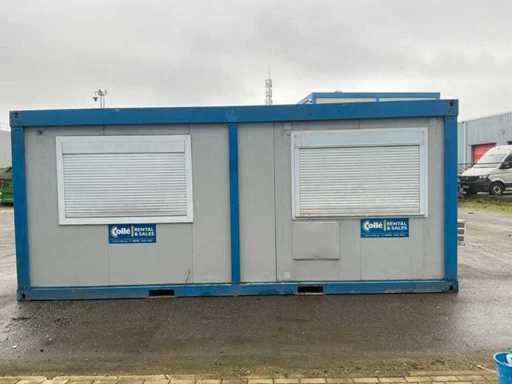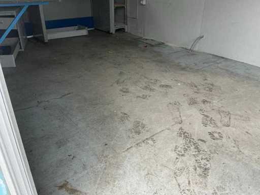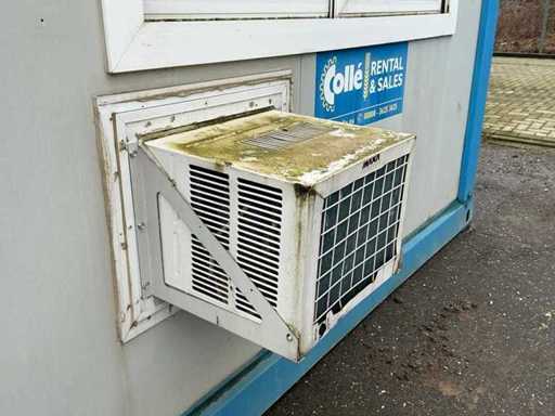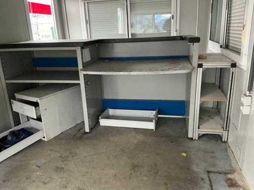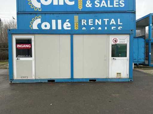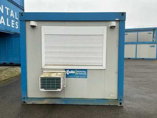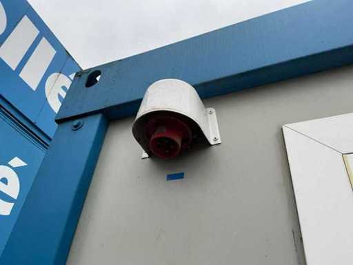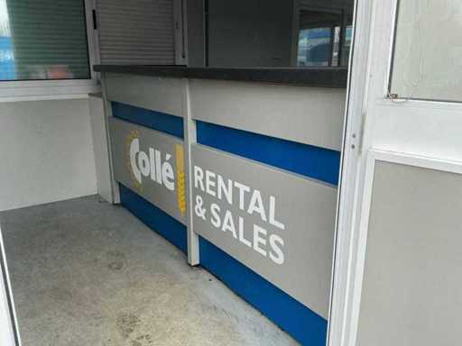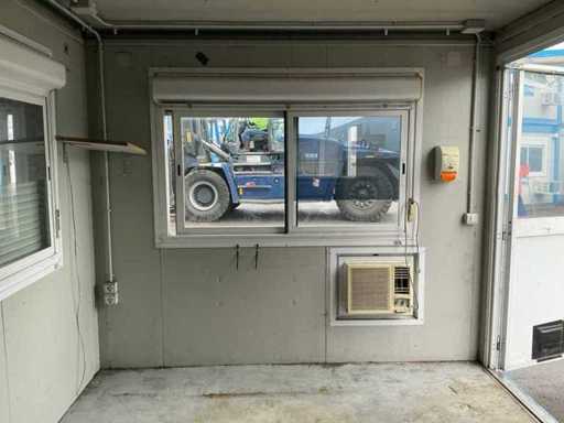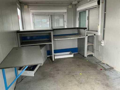 2x porta di wicket; riscaldatore elettrico; illuminazione; 2x aria condizionata Maxa; 3 prese; connessione 400 Volt 32 Ampere; 1 volta maschio, 1 femmina; slotture per carrelli elevatori; 3x finestra con persiana arrotolabile; dotato di banco dispensatorio