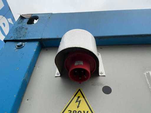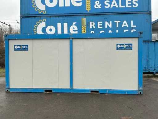1x porta del wicket (danneggiata); riscaldatore elettrico; illuminazione; Aria condizionata Maxa; 3 prese; connessione 400 Volt 32 Ampere; 1 volta maschio, 1 femmina; slotture per carrelli elevatori; 1x finestra con tapparone a scorrimento;