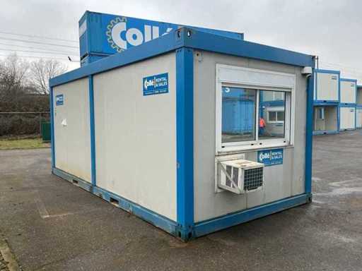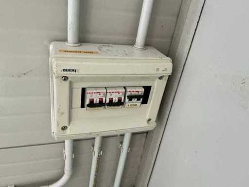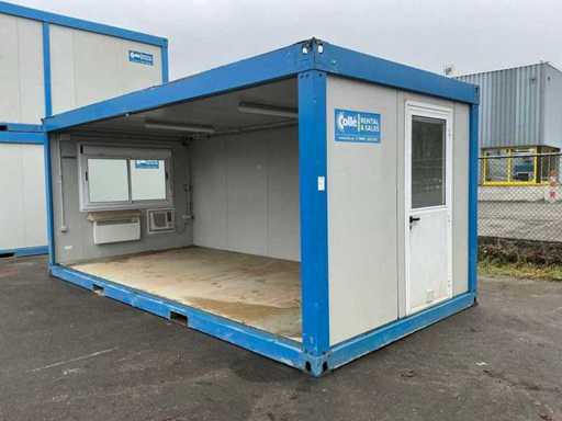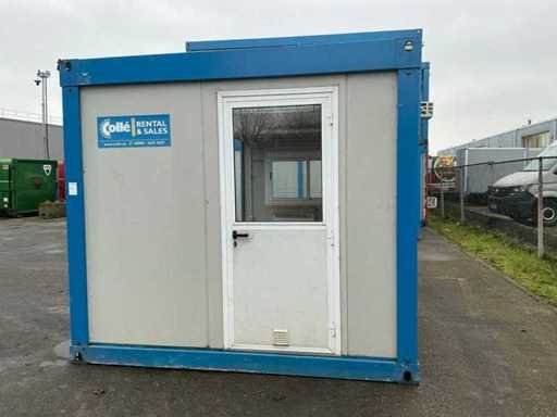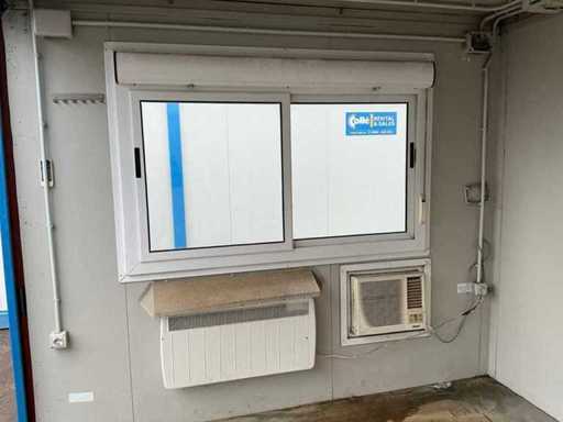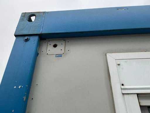 1x porta di wicket; 1x parete laterale; riscaldatore elettrico; illuminazione; Aria condizionata Maxa; 3 prese; connessione 400 Volt 32 Ampere; 1x femmina; slotture per carrelli elevatori; 1x finestra con tapparelle a scorrimento.