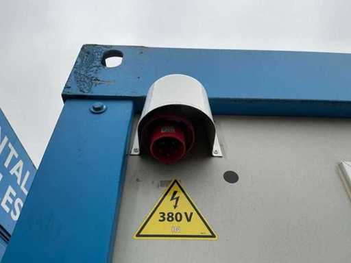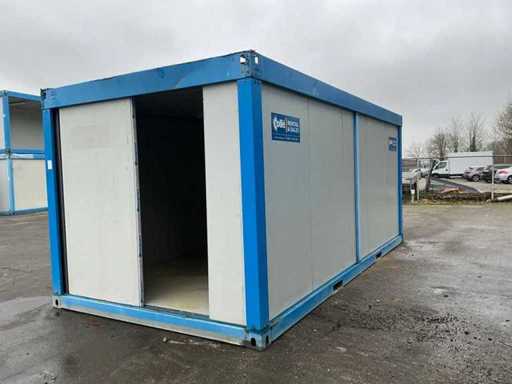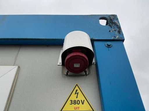 1x porta di wicket; illuminazione; riscaldatore elettrico; Aria condizionata Maxa; 3 prese; connessione 400 Volt 32 Ampere; 1 volta maschio, 1 femmina; slotture per carrelli elevatori; 1x finestra con tapparelle a scorrimento.