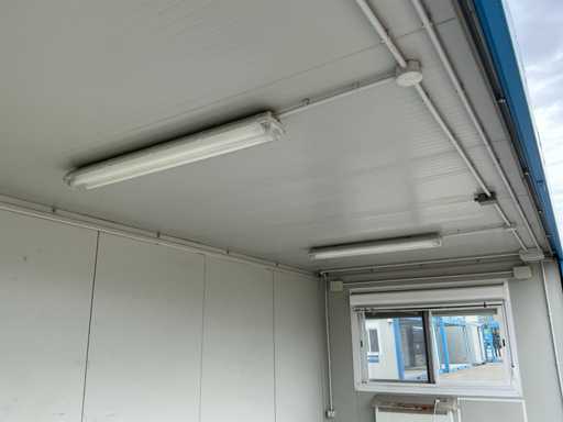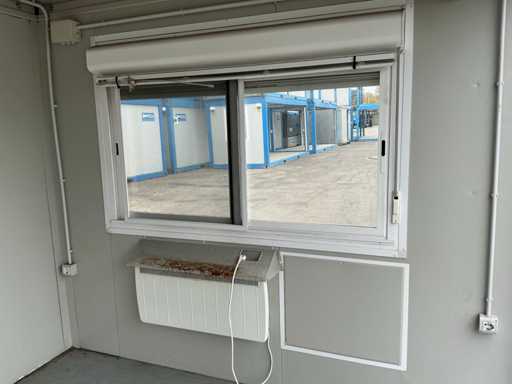 1x finestra; 1x porta di wicket; riscaldatore elettrico; slotture per carrelli elevatori; connessione 400 Volt 32 Ampere 1x maschio, 1x femmina