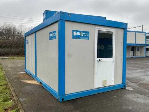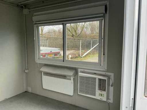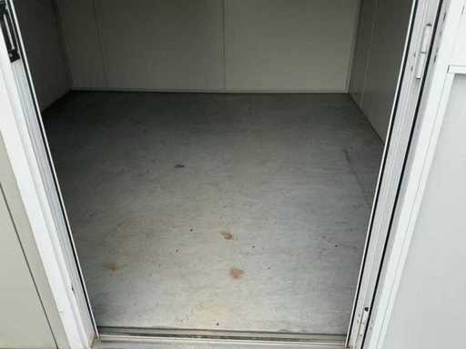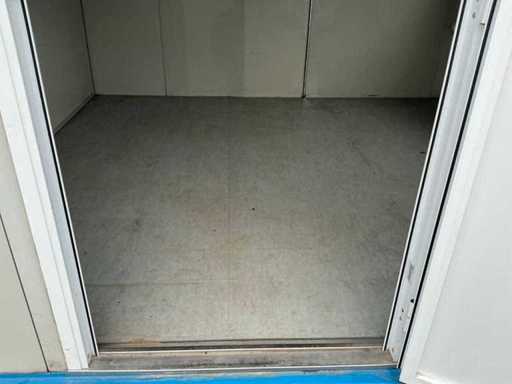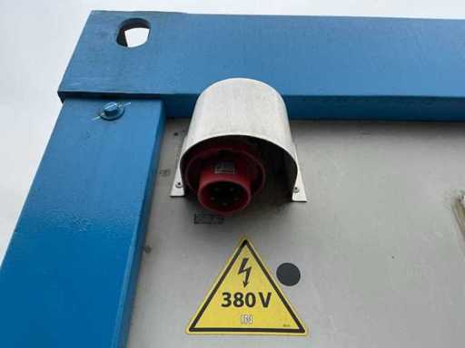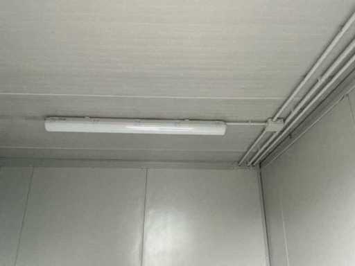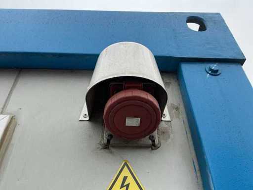 Diviso in 2 parti/spazi; 1x porta per parte; 1x aria condizionata Maxa; 2x riscaldamento elettrico; illuminazione; 3 prese; connessione 400 Volt 32 Ampere; 1 volta maschio, 1 femmina; Scanali per carrelli elevatori