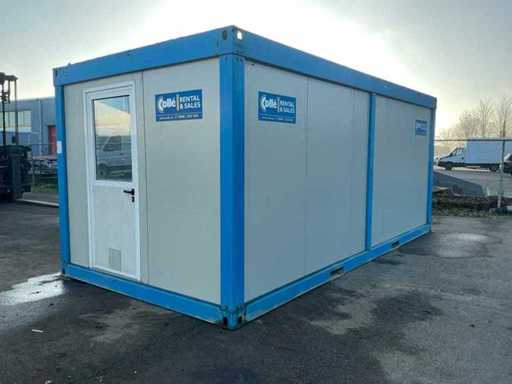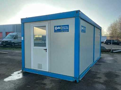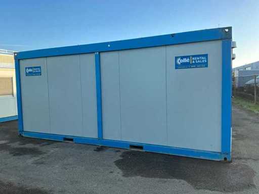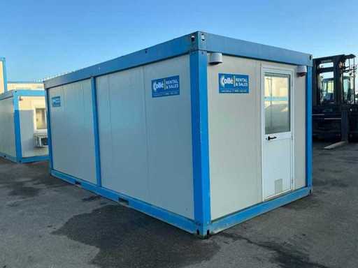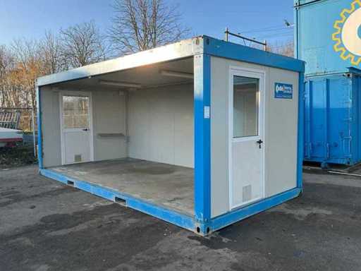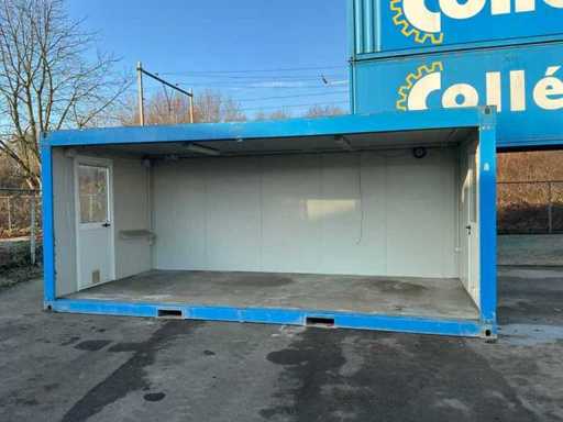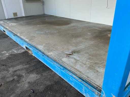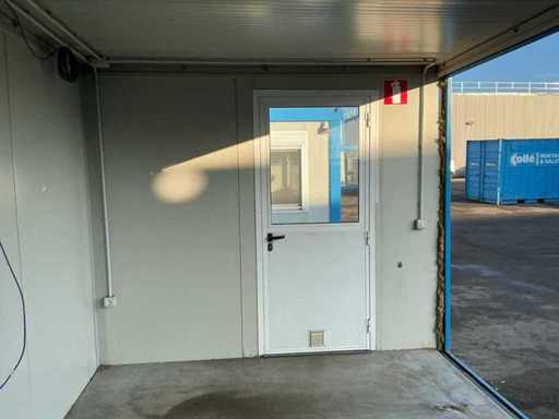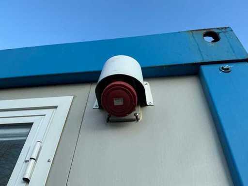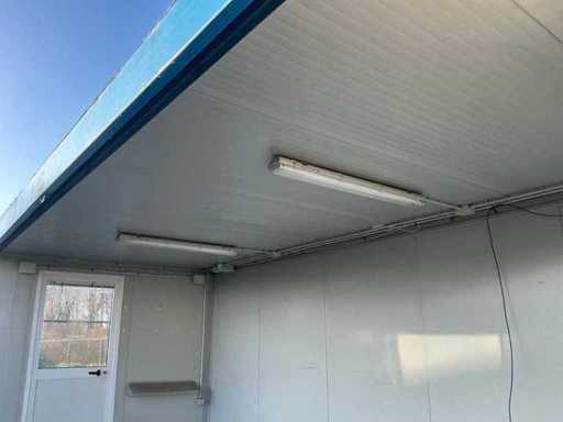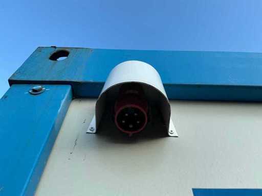 2x porta di wicket; illuminazione; 3 prese; connessione 400 Volt 32 Ampere; 1 volta maschio, 1 femmina; slotture per carrelli elevatori; 1x parete laterale.