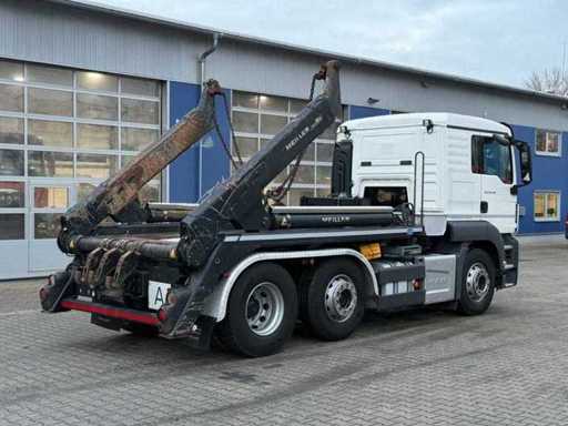 MAN TGS 26 26.460 6x2 Euro 6 con Meiller portal tipper, anno di costruzione 2019. Camion con 3 assi, trasmissione 6x2, cambio automatico e motore Euro 6. Peso in tazza 12,230 kg, peso massimo consentito 26,000 kg, carico utile circa 13,770 kg. Consumo di consumo 254,077 km. Adatto per lavori di contenitori e depositi, ideale per demolizioni, costruzioni, trasporto rifiuti e logistica di container. Dotato di un sistema a portale che permette di caricare e scaricare facilmente i contenitori. Caratteristiche chiave: Telaio 6x2 con sistema a portale di Meiller Motore Euro 6, adatto alle zone ambientali Alta capacità di carico e GVW 26 tonnellate Cabina automatica + moderna, comoda e adatta a lavori intensivi Ideale per rifiuti, demolizioni, trasporto di terreno e contenitori