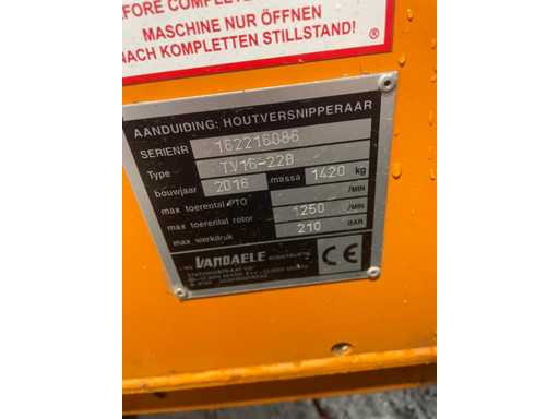 Motore diesel, Velocità massima della presa di forza 1000 giri/min, Velocità massima del rotore 1250 giri/min, Diametro massimo 16 cm
