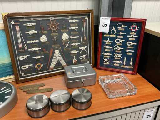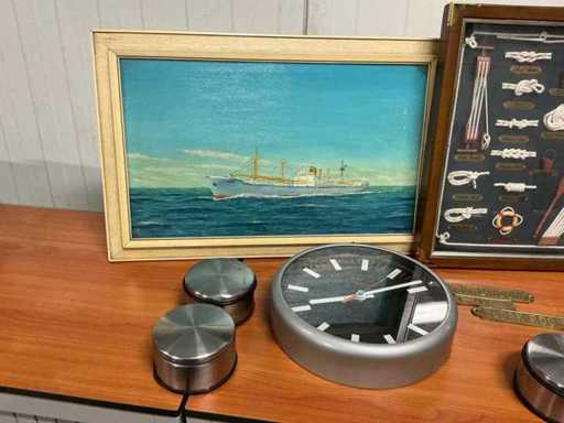 Composto da 3 decorazioni nautiche da parete, fermaporta (5 volte), orologio da parete e vari