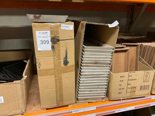Contenuto di 1 sezione composta da alberi di Natale in metallo, appendiabiti, stelle e vassoi in legno Rack non incluso