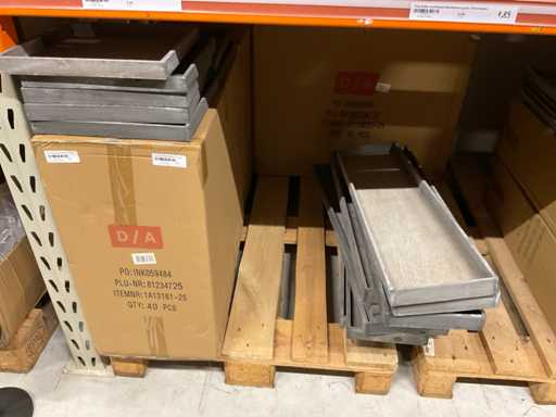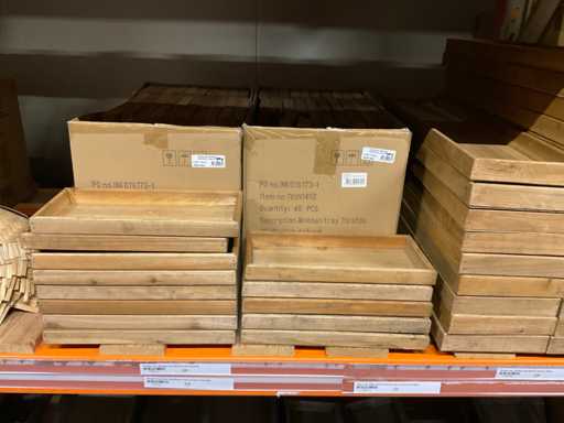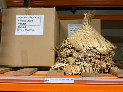 Contenuto della sezione rack composta da varie dimensioni di portabouquet in bambù, vassoi in legno