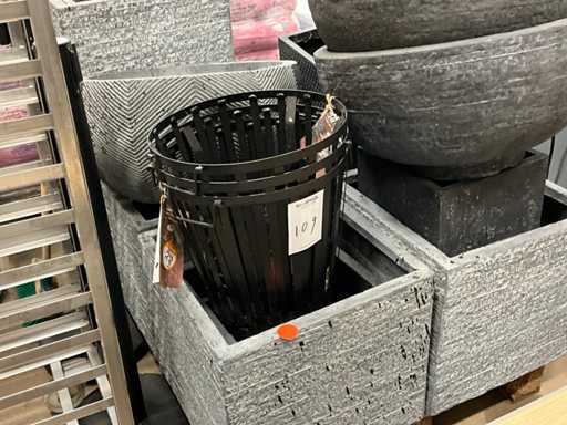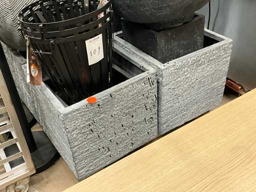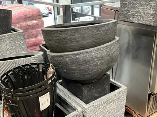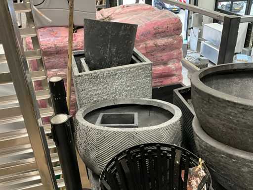 inclusi 19 fioriere in plastica e pietra quadrate/rotonde; 3 centiere in acciaio;