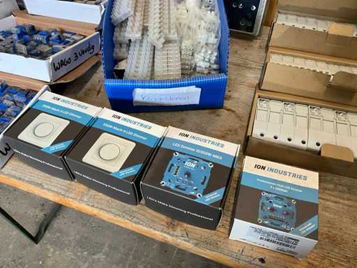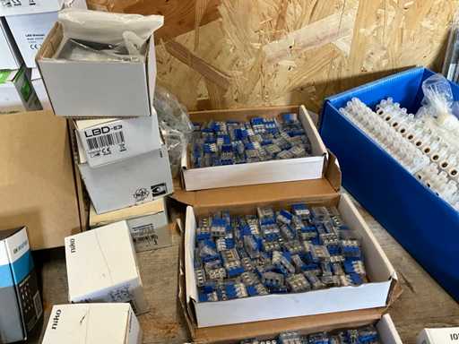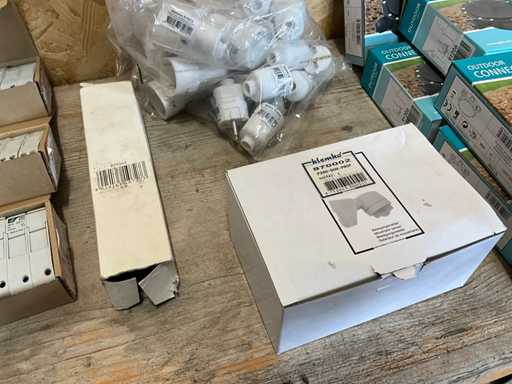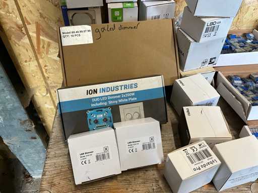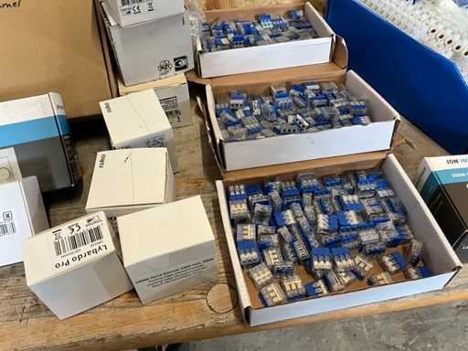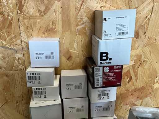 tra cui: dimmer; scatole di connessione; rilevatore di movimento; Spine; soste automatiche; pizzicare;