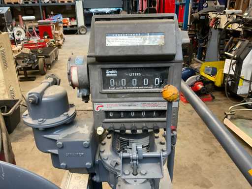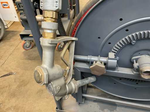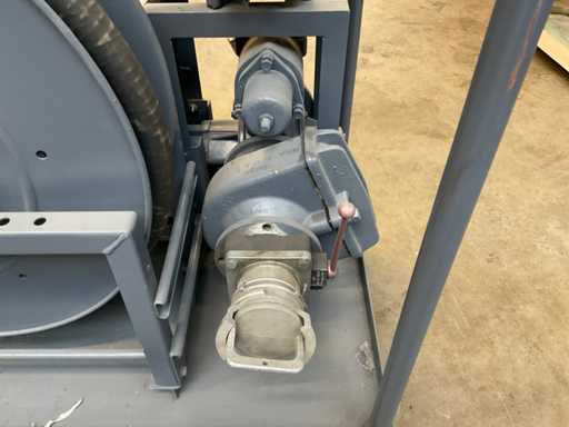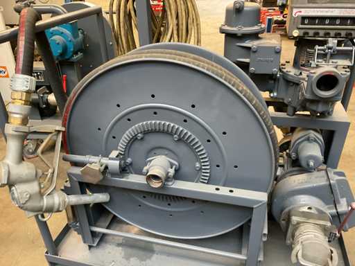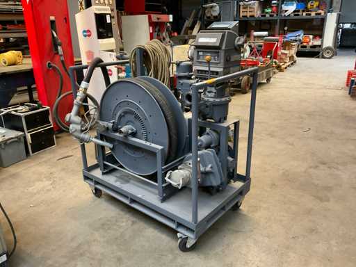 With reel and fuel nozzle, mounted on cart.