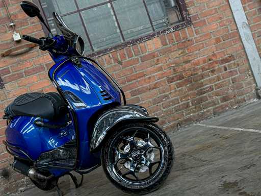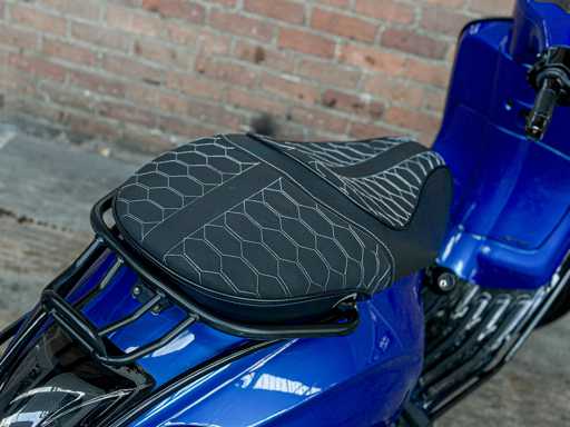 Opzioni: - Scarico personalizzato - Malossi Full 80cc - Blu Custom Candy - Cofano anteriore in carbonio forzato - Pedane in carbonio forzato - Sorgente a gas Zelioni - Disco freno Zelioni - Pastiglie freno Brembo - Copricapo forzato in carbonio della forcella - Bordo anteriore MP3 nero - LED di livello 10 anteriore e posteriore - Faro a occhio angelico - Bordo LED attorno al faro - Leve freno Zelioni - Manici Zelioni - Parabrezza nero ad alta lucidità - Sella mono personalizzata con cuciture blu caramelle - Extra, Vespa a catena di origine - Copertura anteriore della barra di collisione nera - Portaborse nero - Barre posteriori nere - Portapacchi posteriore stile Indo nero - Nuova Michelin City grip 2 anteriore e posteriore - Coperchi nasali a corna in fibra di carbonio - Barra anteriore nera - Strato antiruggine sotto Vespa - Coperchio carter nero - Contatore SIP originale - Caricatore USB