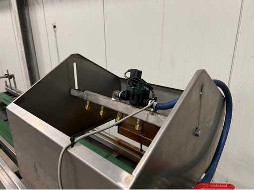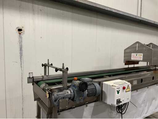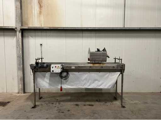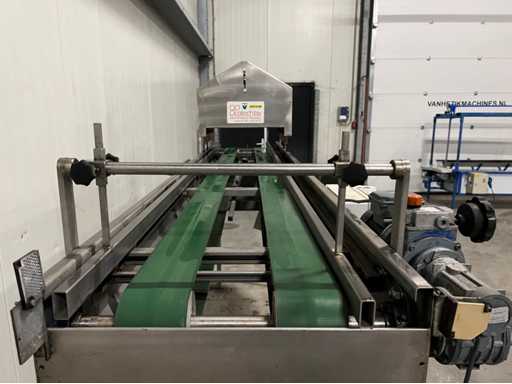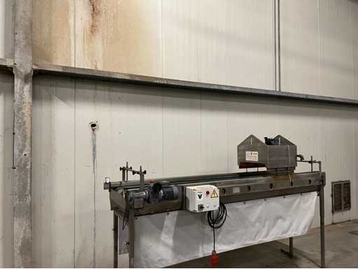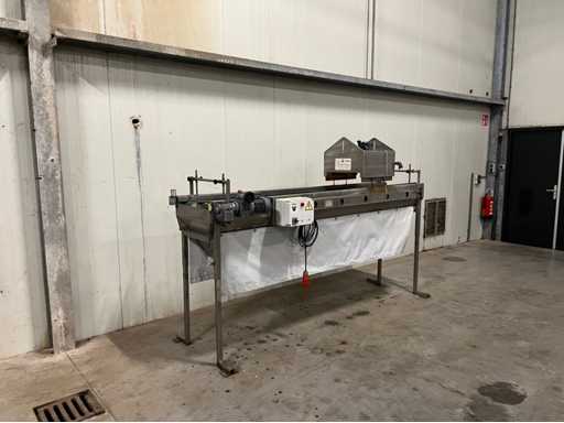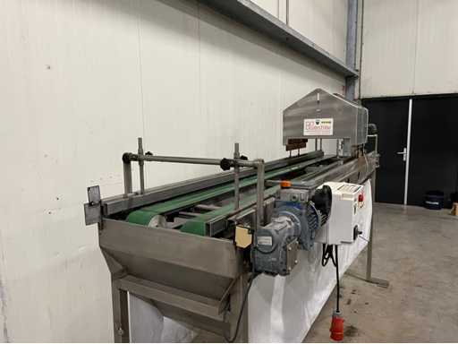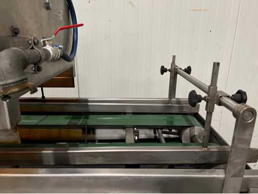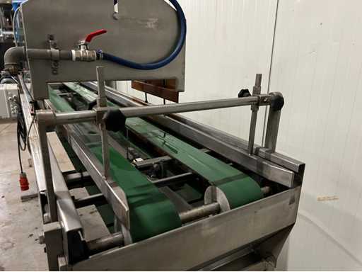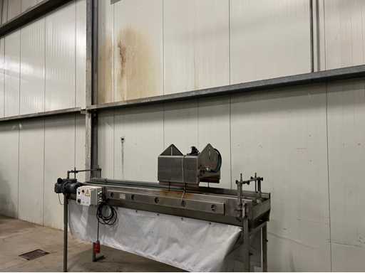 Regolabile in altezza, dotato di guide laterali regolabili, larghezza massima 40 cm, (adatto per bidoni 60 x 40 cm) velocità regolabile in continuo