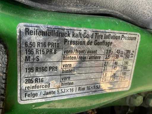 - ORIGINALE 16" pollici (pacchetto pesante) - Installazione camper (Westfalia 2 persone) tetto alto, - 2.1 WBX - 4x4 - 2 chiuse + distaccatore + passaggio con sbarco - Portaruota di scorta - Riscaldatore del parcheggio (funzionamento sconosciuto) - Frigorifero - Bearlock - Dimensioni 480x175x250 cm - Storia nota, fatture, documenti