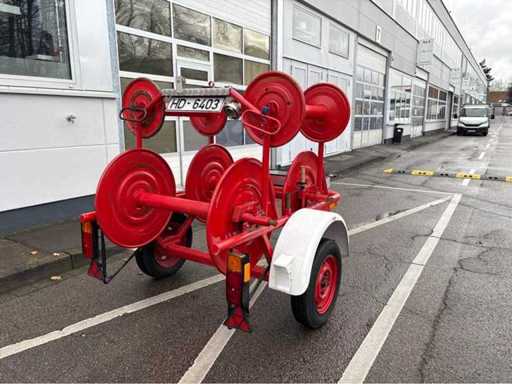 Stützrad und Deichselanschluss (Ringöse) vorhanden. Elektrik mit Beleuchtung und Blinker, seitliche Schutzbleche, Signallicht, 6 Haspeln verbaut.