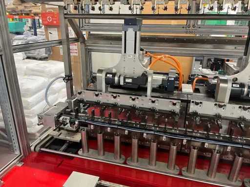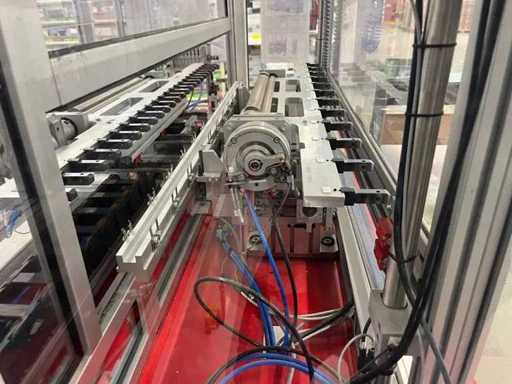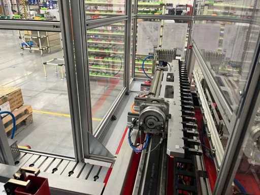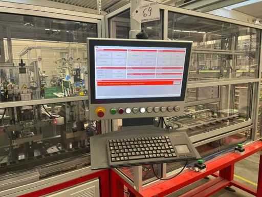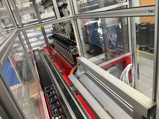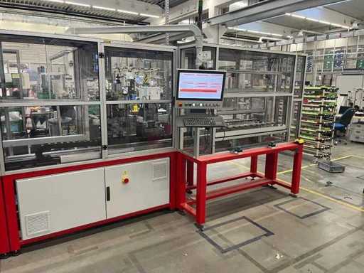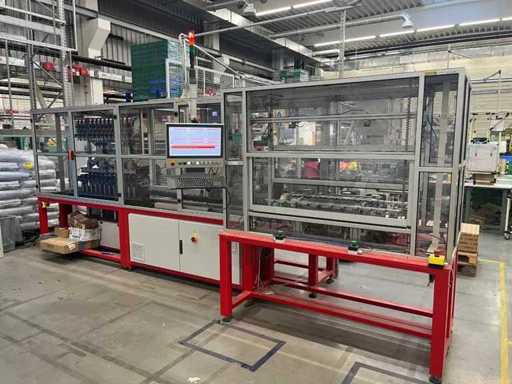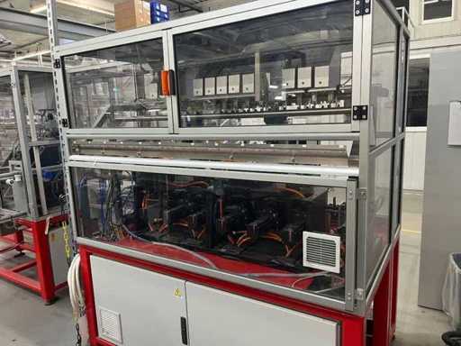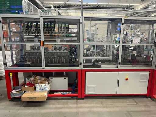 lavora completamente in automatico .E' completa di un trasfer Esegue l'inserimento dei terminali; Inarca in automatico; esegue anche il test di continuità del prodotto. La macchina e completa di 12 tendifili elettronici della brt ,volendo contattando il costruttore si può anche modificare alle vs esigenze mettendo altre stazioni.La macchina è smontata in tre parti la macchina/ l' inserimento terminali /trasfer lunghezza della linea mt 5.40 larghezza mt 2,17 altezza mt 2,03 peso kg 2700