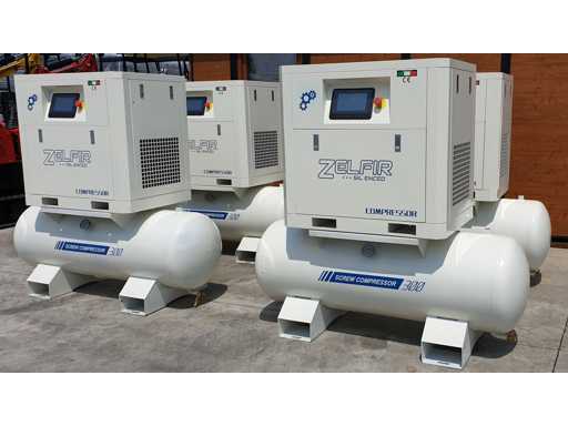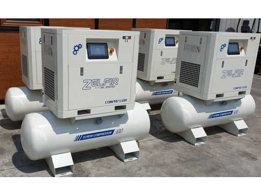 Compressore a vite super silenziato, alimentazione 380 volt, 7, 5 kW 10 hp con serbatoio 330 litri, pannello digitale per comandi, inverter per gestione motore, pressione 8 bar, mai usato - 0 ore, imballato nella sua confezione originale