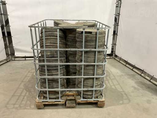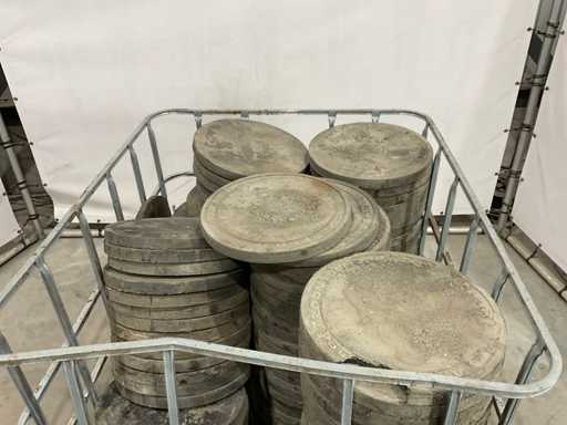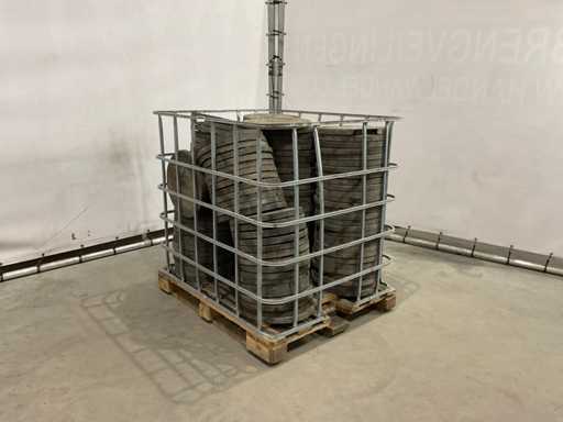 circa 150 pezzi per cassa; Pardak è un sistema scarrabile per parcheggi su tetto; I distributori di pressione fanno parte di questo; i distributori di pressione sono realizzati con granuli di gomma pressati di alta qualità; circa 39,5 cm di diametro; Il lotto è composto da 5 casse