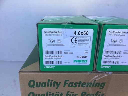 (12x) PARCO® Span-Fast | 1090T | 4,0 x 60mm | Blau-Verzinkt | Teilgewinde | TX (2400 stuks)