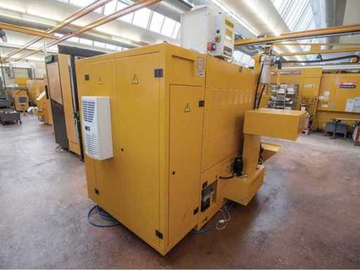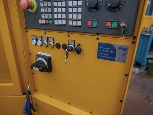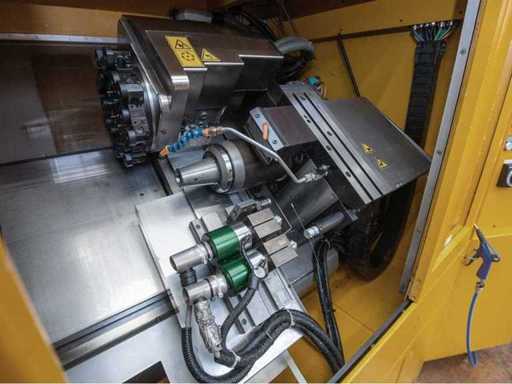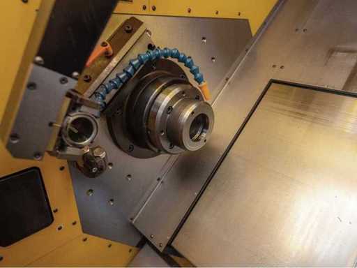 Inwerkingstijden: 9526 X/Z-as veerweg: 400/400mm Spilsnelheid: 8,000 tpm Torenposities (bestuurd): 16(8) Aangedreven gereedschapssnelheid: 6,000 tpm Gereedschapstype: VDI16 Machineafmetingen LxWxH: 2,300x1,200x1,700mm Machinegewicht: 2.300 kg Uitgerust met: onderdeel vanger, ISI oliemistscheider