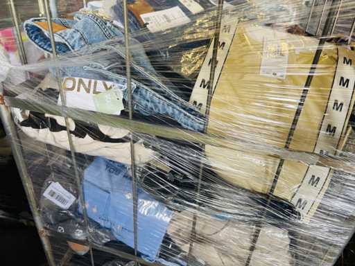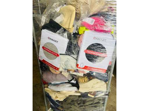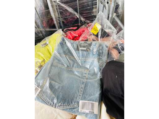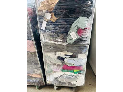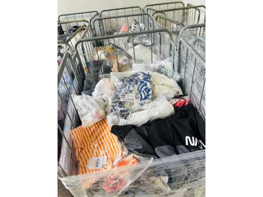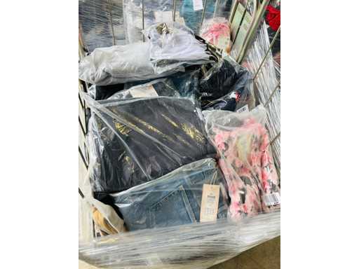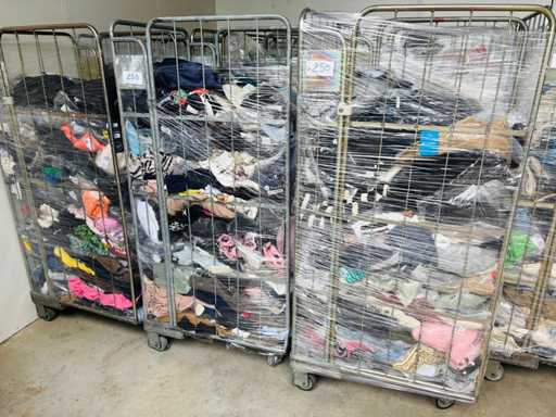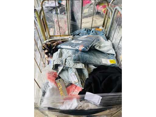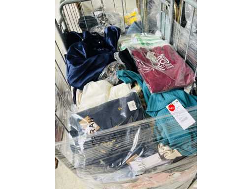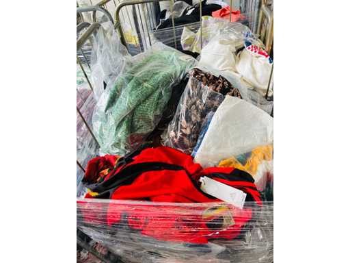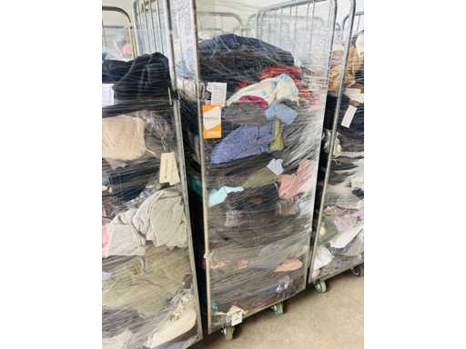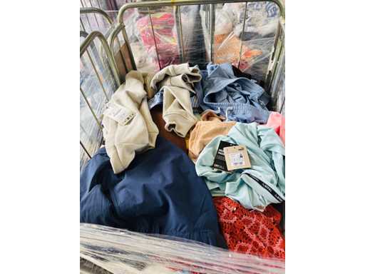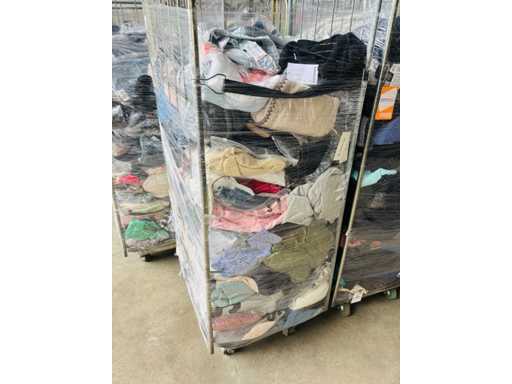 (x4000) Nieuwe kleding van verloren of niet-opgeëiste pakketten. Vooral: kleding voor volwassenen. Bevat x15 Transporttrolleys / rollen die bij de bundel worden geleverd. x15 trolleys/rollen overeenkomend met een volle vrachtwagen van 20m3