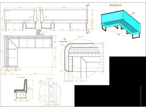 1 pallet met 4 gestoffeerde banken, afmetingen 2500 x 800 x 1700 mm; gewicht 180 kg