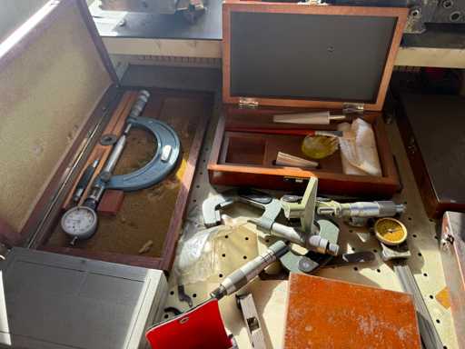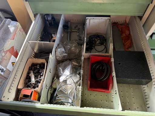 Inhoud bestaande uit diverse meetapparatuur zoals beugel, maatschroeven, testpennen