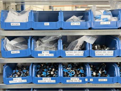 Inhoud van de plank: Plastic dozen met pneumatische kleppen in verschillende ontwerpen, zie foto's voor meer details