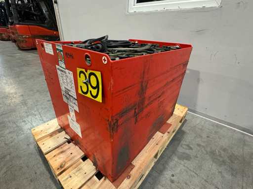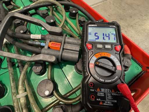 Hoppecke-accu 09/2018 van voormalige Linde-dienst, zeer goede prestaties gemeten met 51,47V