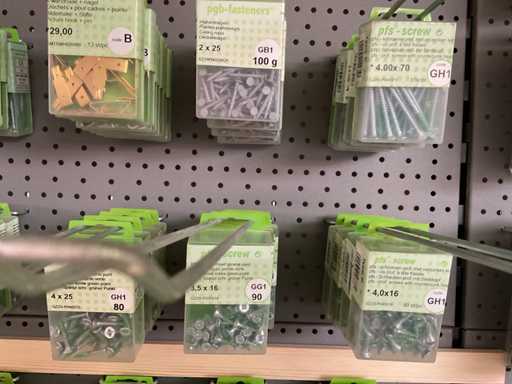 Schroeven; konsoolhaken; houtbouten; puntduimen; schroefduimen; plafondnagels