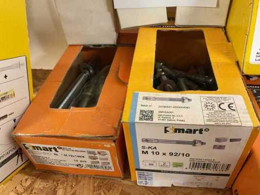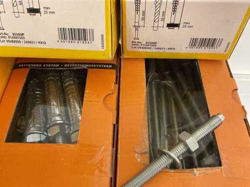 1 x partij dozen keilankers; nagelpluggen; draadstangen