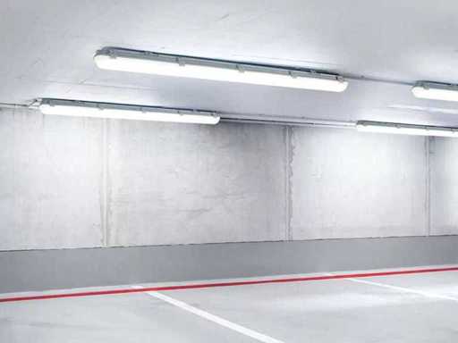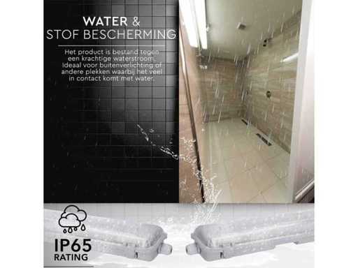 A++ klasse TL_led armaturen inclusief ledlampen. Spatwaterdicht afgeschermd, IP65 gecertificeerd, lengte 120 cm, 2 x 18 watt. De inbegrepen LED TL buizen zijn snel en eenvoudig te plaatsen en vervangbaar. Met meerdere koppelbaar, zowel geschikt voor droge ruimten als in vochtige ruimten worden gebruikt. Het armatuur is een vervanger van alle reguliere TL lampen. Lichtkleur natuurlijk wit, lichtopbrengst 3600 lumen Producteigenschappen: Afmeting: 120 cm x 15 cm x 4.4 cm. Led lichtbron: ja, lichtsterkte 2 x 18 watt, lichtkleur 4000K, lumen: 3600 lm, Straal hoek: 120 graden, Afscherming: IP65.