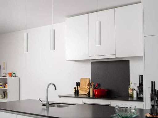Compacte pendellampen geschikt voor verlichting van ontvangst ruimten, werkkamers, de showroom, tevens geschikt voor hospitality en residentiele toepassingen waaronder keuken, woonkamers of studeerruimten. Eenvoudig te plaatsen en te gebruiken met ieder led of halogeen lampje van het type GU10. Dimbaar, in hoogte verstelbaar en zullen overal voor een perfecte verlichting zorgen. Product eigenschappen: Afmeting: ca 55 x 200 x 100 cm, fitting: GU10. Gewicht: 450 gr, lichtbron niet inbegrepen. Kleur mat wit Bijzonderheden: Dit betreft een volledig nieuw product