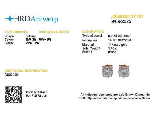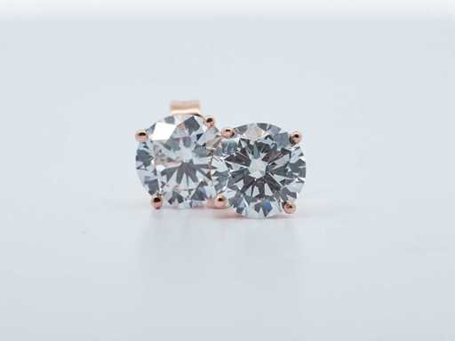 14 Karaat roségouden oorstekers met 2,20 crt. diamant