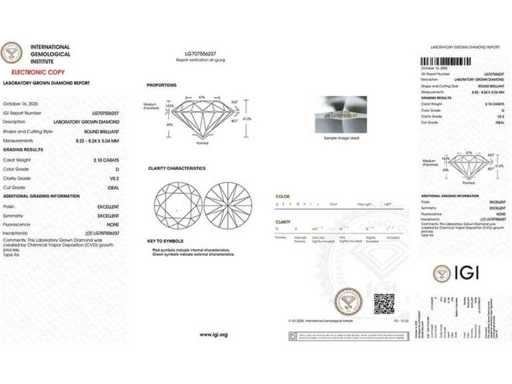 Aantal items-1, metaal-goud, Totaal bruto gewicht: 4,09, Samengesteld met in het laboratorium gekweekte diamant, Aantal diamanten: 1, Totaal karaatgewicht: 2,1, Diamanten Helderheid: VS2, Diamantvorm/Slijpvorm: Ronde briljant, Diamanten Kleur: D, Conditie: Nieuw, Maat-EU-54, US-7, VK-N1/2 (Diameter-17,2mm), Goudzuiverheidskeurmerk op het sieradenartikel, Designcode: 12005-SR101095, Verpakking: Sieradendoosje, IGI-certificaat inbegrepen, Historische winkelprijs: €3745, Al onze partijen worden in Fedex-dozen verzonden via High Priority. Het wordt meestal binnen 7-14 dagen verzonden en de levering gebeurt daarna binnen 24-48 uur. De kavels zijn verzekerd en vooruitbetaald door de verkoper.
