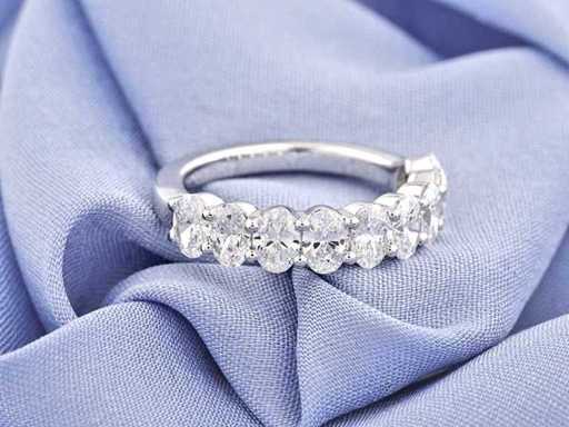 Aantal items-1, metaal-goud, totaal bruto gewicht: 4,71, gezet met laboratoriumgekweekte diamant, aantal diamanten: 9, totaal karaatgewicht: 2,26, diamanten helderheid: VS, diamantvorm/slijpvorm: ovaal geslepen, diamanten kleur: EF, conditie: nieuw, maat-EU-54, US-7, VK-N1/2 (diameter-17,2 mm), Goudzuiverheidskeurmerk op het sieradenartikel, ontwerpcode: 8589-SR006530, verpakking: sieradendoosje, IGI-certificaat inbegrepen, historische winkelprijs: €3495, Al onze partijen worden verzonden in Fedex-dozen via hoge prioriteit. Het wordt meestal binnen 7-14 dagen verzonden en de levering gebeurt daarna binnen 24-48 uur. De kavels zijn verzekerd en vooruitbetaald door de verkoper.