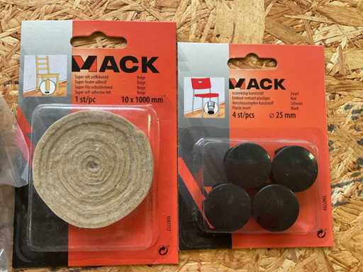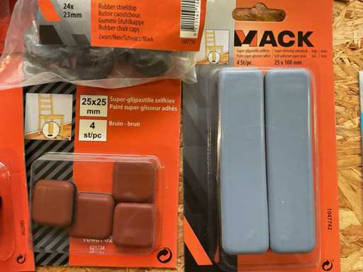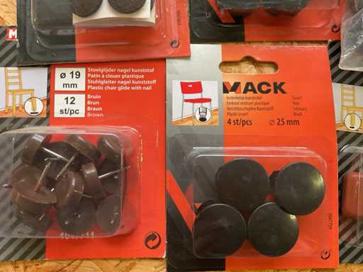Insteekdop; zelfklevende viltjes; stoelglijders