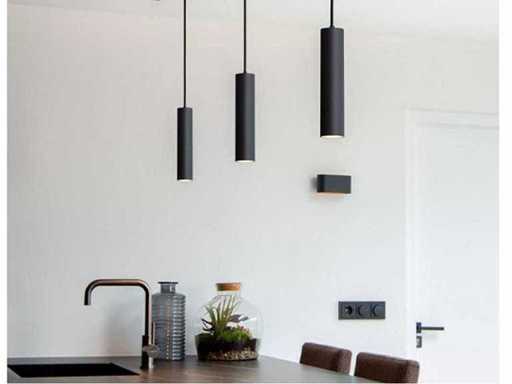 Compacte pendellampen geschikt voor verlichting van ontvangst ruimten, werkkamers, de showroom, tevens geschikt voor hospitality en residentiele toepassingen waaronder keuken, woonkamers of studeerruimten. Eenvoudig te plaatsen en te gebruiken met ieder led of halogeen lampje van het type GU10. Dimbaar, in hoogte verstelbaar en zullen overal voor een perfecte verlichting zorgen. Product eigenschappen: Afmeting: ca 55 x 200 x 100 cm, fitting: GU10. Gewicht: 450 gr lichtbron niet inbegrepen. Kleur mat zwart Bijzonderheden: Dit betreft een volledig nieuw product