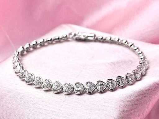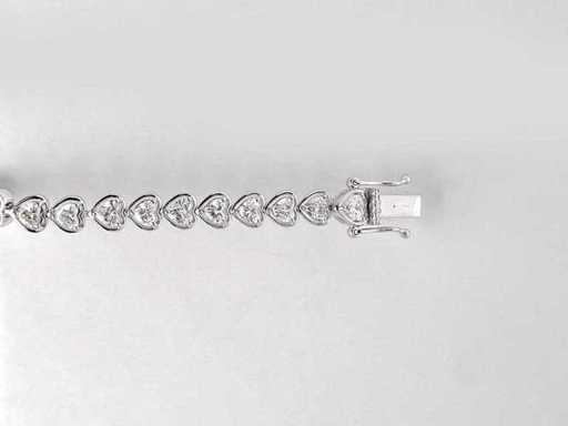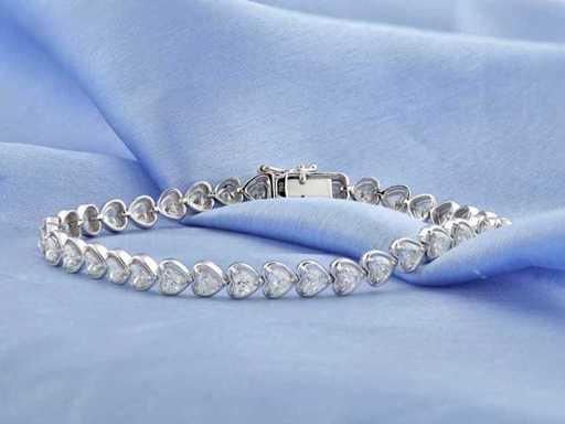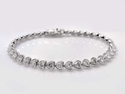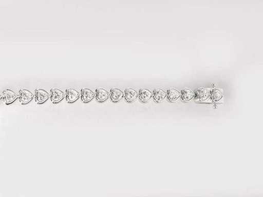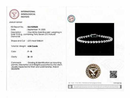 Aantal items-1, metaal-goud, totaal bruto gewicht: 12,03, bezet met natuurlijke diamant, aantal diamanten: 37, totaal karaatgewicht: 4,84, diamanthelderheid: SI-I1, Diamantvorm/slijpvorm: Hart briljant, Diamantkleur: FG, Conditie: Nieuw, Maat-18,50 cm, Goudzuiverheidskeurmerk op het sieradenartikel, Designcode: 9461-SB225098, Verpakking: Sieradendoosje, IGI-certificaat inbegrepen, Historische winkelprijs: €27245, Al onze partijen worden in Fedex-dozen verzonden met hoge prioriteit. Het wordt meestal binnen 7-14 dagen verzonden en de levering gebeurt daarna binnen 24-48 uur. De kavels zijn verzekerd en vooruitbetaald door de verkoper.