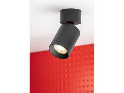 Kantelbare plafond of wandspots, geschikt voor plafond of wandmontage, geschikt voor werkkamers, ontvangstruimten, spreekkamers of de showroom aan rechte of schuine daken. De armaturen zijn volledig dimbaar en zijn te gebruiken met iedere led of halogeen lampje van het type GU10 Afmetingen: 15.6 x 5.6 cm Aansluiting: 230 Volt, Fitting GU10, Bijzonderheden: Dit product is volledig nieuw