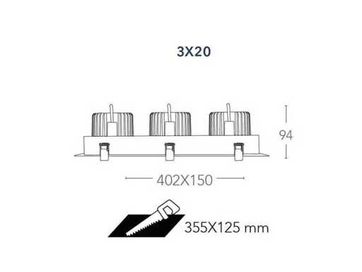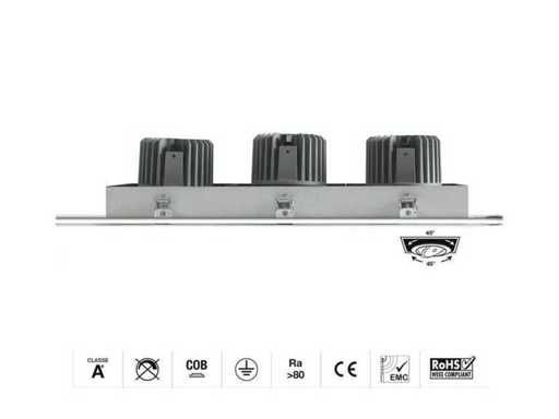 Professionele led inbouwarmaturen voorzien van een krachtige led lichtbronnen. De armaturen geven neutraal wit licht, zijn kantelbaar zonder verblinding en zullen in iedere ruimte direct een goede licht uitstraling geven.Type: INC-APOLLO-3X10M / 8031440360678/ Lichtbron: inbegrepen, 30 Watt led. Lumen: ca 2400 Lm. Lichtbundelbreedte 40 graden. Afmetingen ca 15 x 40 x 9.4 cm, IP20. Conditie: nieuw. Lotwaarde: € 2790,-