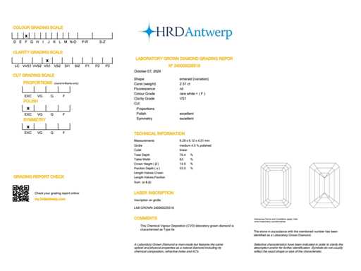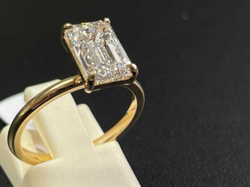 18k geelgouden solitaire ring met 2.51 ct emerald diamant - F/VS1