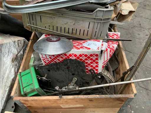 Frame en body gerestaureerd en gespoten, Motor en versnellingsbak gereviseerd, Diverse onderdelen aanwezig verdeeld over 3 palletkisten waaronder interieur