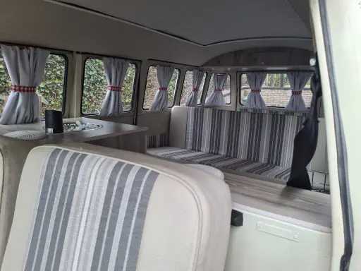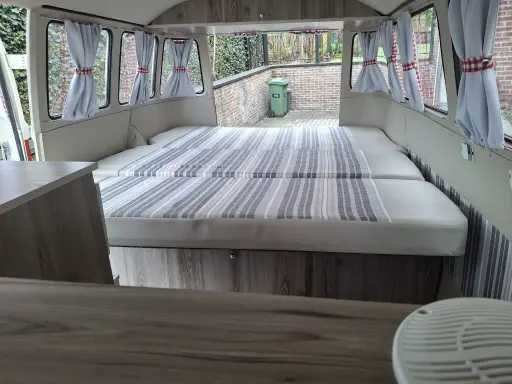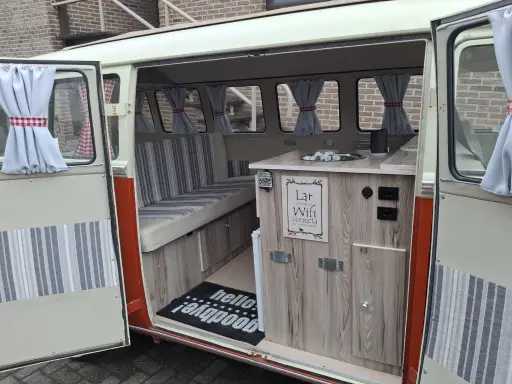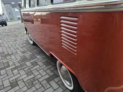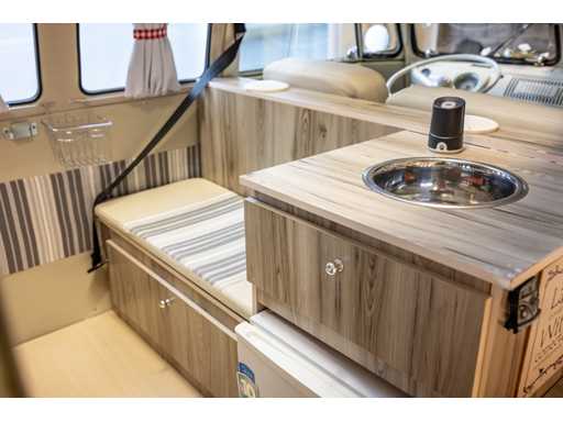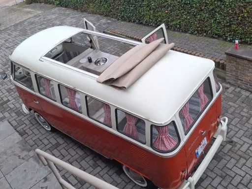 Volkswagen T1 camper, gerestaureerd en voorzien van een 1600cc motor. De motor is later ingebouwd en werkt goed; facturen van de plaatsing zijn aanwezig. – het blijft een klassieker met wat gebruikssporen.